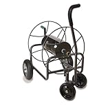 The newly designed Four-Wheeled Hose Reel Cart with Easy Turn Handle is a heavy-duty, easy way to lug around great lengths of garden hose. It holds an unbelievable 400 feet of 5/8-inch hose, enough for gardens of any size. With high quality pneumatic wheels and a well balanced design this Hose Reel Cart moves easily over rough terrain. Swiveling front wheels with comfortable tow handle make it easy to maneuver over long distances. Simply attach the bolt-on wheels, reel crank, and snap-on frame handle and this hose truck is ready to provide years of service. All steel with an anti-rust finish. Yard Butler guarantees all Yard Butler tools for life against any defects in manufacturing or materials.